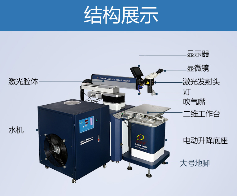 出口型模具激光焊機(jī)是通發(fā)激光公司專門為出口國外客戶使用而設(shè)計(jì)的系列機(jī)型TFL-200E,適用于各類精密注塑模具、壓鑄模具等模具激光修補(bǔ)焊接;同時(shí)也適合鑄件沙孔激光修補(bǔ)、模具崩缺激光修復(fù)、過切加工等的激光修補(bǔ);各類金屬結(jié)構(gòu)件、金銀首飾的激光焊接加工。