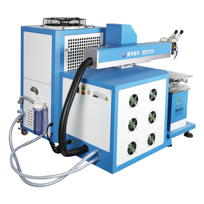 TFL-400Ⅲ型模具激光焊機(jī)是通發(fā)激光公司自主研發(fā)的一款大功率激光焊接機(jī),采用通發(fā)自主研發(fā)的二代精密雙燈電源為燈泵浦驅(qū)動電源,配置觸摸屏,操作更方便。主機(jī)具備激光頭手搖升降與工作臺按鈕電動升降實(shí)現(xiàn)焊接不同厚度模具的激光焊加工。本款機(jī)型更適用于各類大功率、大面積激光修補(bǔ)的模具。由于激光功率大,同時可激光焊接鈹銅模具,鋁材模具或鋁材零件。在大面積激光修補(bǔ)模具時,可以使用更粗的焊絲,激光焊接效率大幅提升。